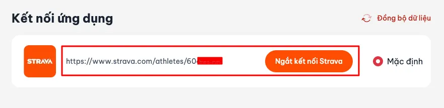 - Kết nối thành công sẽ hiển thị đường dẫn tới tài khoản Strava và nút “Ngắt kết nối”